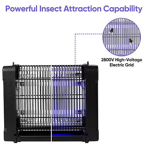 Our high-power electric bug zapper is designed to attract and effectively eliminate flies, bugs, moths, and mosquitoes with its 4300V power grid, delivering an electric shock to swiftly deal with pesky insects.