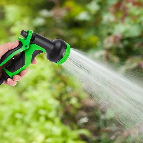 The spray gun of the garden hose boasts seven spray functions, including shower, jet, mist, full, cone, centre, and flat, along with a trigger lock option for constant flow, giving you the flexibility to choose the right water flow for your specific needs. The rear water regulating valve allows for easy pressure flow adjustment, ensuring that your garden gets the perfect amount of water. The anti-kink and leak-proof construction ensures smooth water flow, prevents water waste, and prolongs the life of the hose.