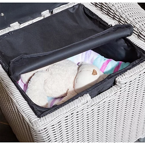- Hinged table lid and weatherproof zipped liner