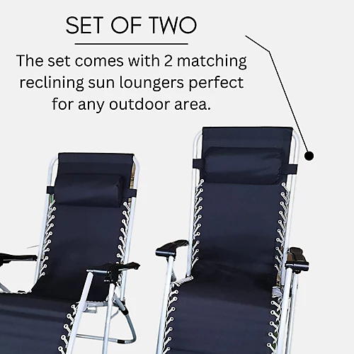 Sit back and relax in the comfort of your own garden with this gravity reclining sun lounger set. Nothing better than sitting with a glass of bubbly and enjoying your own surroundings.