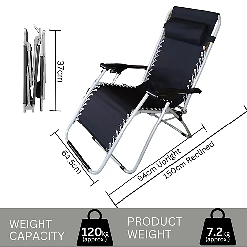 Manufactured from a silver steel tubular frame, and a strong black oxford material this garden sun chair is sure to last in the heat and will make you feel like your actually on a sunny island.