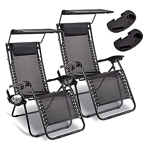 Soak up the sun in style with this set of 2 zero gravity lounge chairs! Featuring a cup and phone holder, a head rest and fully adjustable canopy, you can enjoy a luxurious recline in the sun and protect yourself from its rays if it gets too much!