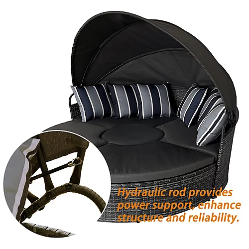 5 Piece Modular Wicker 180CM Garden Daybed With Extendable Canopy, Soft Cushion, Pillow, Cover – Gray