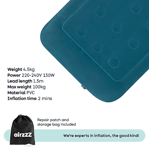 - Weight and Power: Weighing just 4.5kg, this lightweight air bed is easy to carry and set up anywhere you desire. Powered by a 220-240V 50Hz 130W electric pump, it offers efficient inflation and deflation. The 1.5m lead length allows for flexible placement.