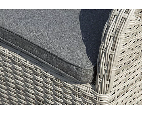 The light grey coloured half round rattan looks stunning with charcoal cushions fitting perfectly into any modern garden.