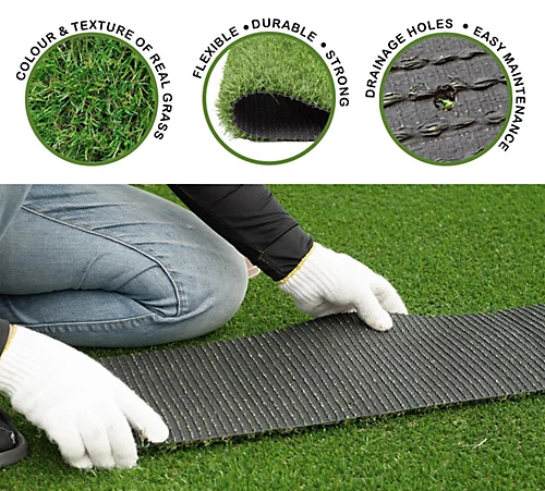 EASY TO CLEAN AND MAINTAIN: Easy to clean this artificial grass is perfect for families with children and pets. The lawn features drainage holes that allow water to seep. Simply rinse the lawn with a garden hose and allow to dry.