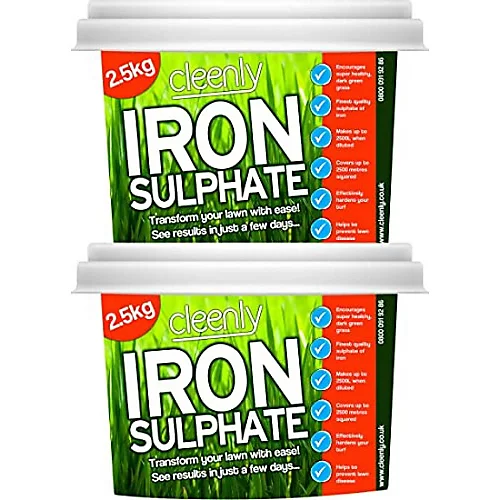 Grass Greening: Use 1-2g iron sulphate per 1L water. Use 1L of this solution per square metre of turf. Apply this solution to your lawn using a pump sprayer or watering can. Water down thoroughly using freshwater.