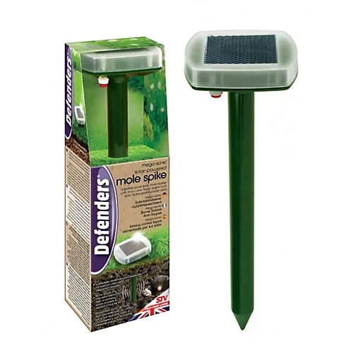 Made from plastic. Drives away moles without harm. Protects lawns, seed beds and bedding plants. Built in solar rechargeable power pack. Works throughout the night. Weather resistant housing. Easy to use. Sonic pulse and vibration every 50 seconds. Coverage up to 30m.