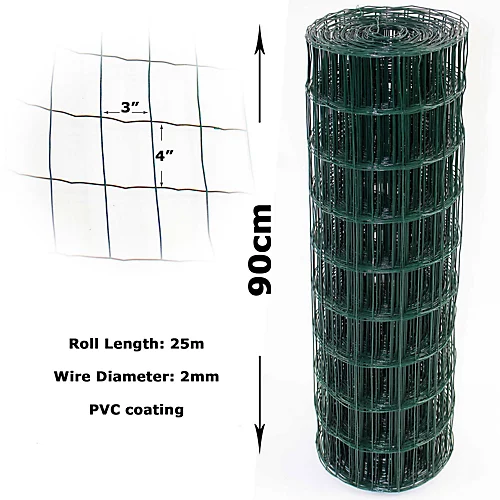 - Roll of PVC coated garden fencing with 90cm width and 25m length.