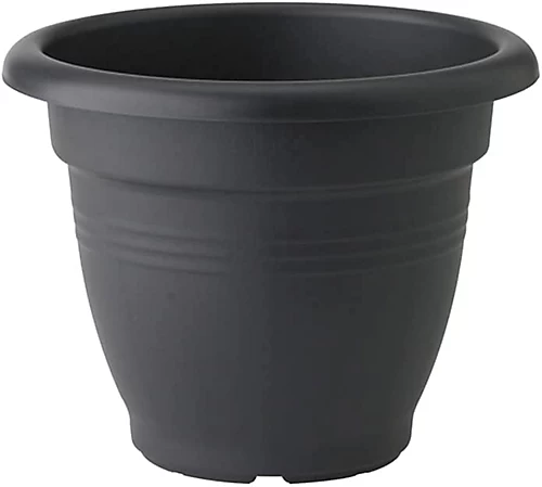 The green basics campana has an elegant design. Because e slender shape and round edge, it is a favourite model among the outdoor flower pots from elho. The unique bottom is especially designed for an optimal plant care, and there is a matching saucer available for all sizes.