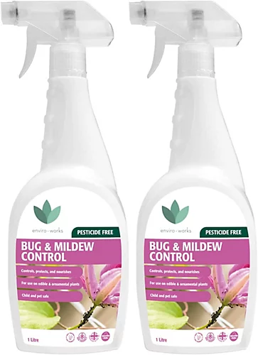 Child, pet and bee safe Enviro Works Bug + Mildew Control is a pesticide free solution for use on flowers, fruit, vegetables, herbs and ornamentals, both outside and undercover. Controls a wide range of pest species including whitefly, aphid, red spider mite, mealybug, scale and psyllid. Working by physical mode of action, this product contains a blend of surfactants which stop the pests from moving and being able to feed. This not only makes them safe to be used around children and pets, but also safe for bees and wildlife too. Enviro Works Bug + Mildew Control helps to control, with regular use, powdery mildew by physically washing the foliage to remove active mildew spores. The formula also provides foliar nourishment to encourage healthy plant growth and promote abundant fruit, vegetables and vibrant flowers. No harvest interval is required, meaning the produce can be eaten within hours after application. Proven to be highly effective, the same formulation is currently used by many professional growers and landscapers across the UK and Europe.