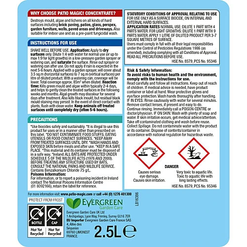 - Ideal for killing and controlling most algae, moss and mould on driveways and patios in a single application
