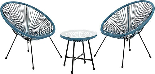 - QUAINT DESIGN The Evre Goa Furniture Set gives that perfect holiday and poolside feeling that we’ve all been missing. Featuring two, super stylish, handwoven chairs and a quaint, glass topped coffee table – perfect for any size outdoor space. Sit back and relax in the cosy chairs that are interlaced with premium quality PE rattan that contours to your body shape for that optimal comfort feeling.