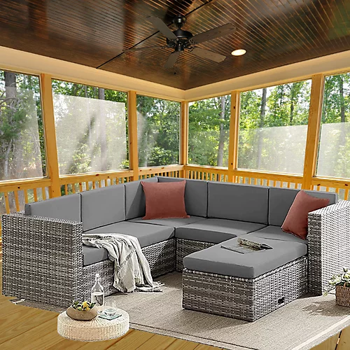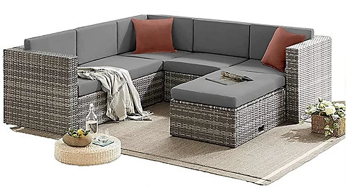- HIDDEN SPACES, THOUGHTFUL FEATURES Transition between a 5 seater to a 6 seater by converting your coffee table into an additional seat or moveable ottoman, giving your guests the opportunity to have their feet up. Discover the hidden storage space within your table, and hide away your extra cushions and blankets. The adaptable set that will suit any outdoor space.