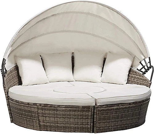 - 5 Piece showstopper – Bask in the outdoor sun or cosy up with a partner in the warm evenings on this round daybed; Need to host a bigger party? conveniently separate the front to create five separate seats for a uniquely hybrid furniture set that’s perfect for doubling up as a table when the centre console cushion is removed.
