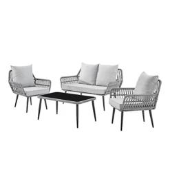 Grey 4 Piece Sofa Garden Set With Wicker Rope Style Chairs Coffee Black Glass Topped Topper