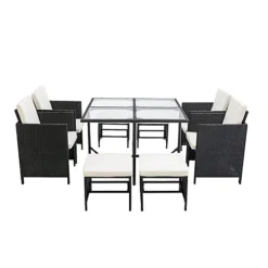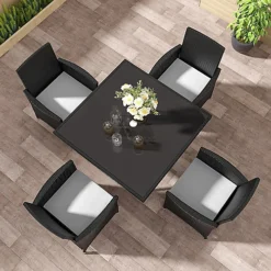 MCC Direct Rattan Garden Furniture Table And Chair Set Cuba Black