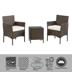 Livingandhome 3Pcs Brown Folding Rattan Plastic Garden Camping Table Chair Set 120 Cm