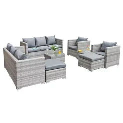 Oseasons Acorn Deluxe Rattan 10 Seat Modular Sofa Set In Dove Grey