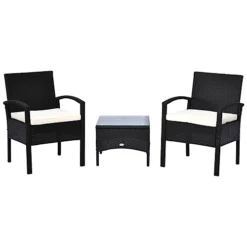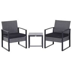 Outsunny 3Pcs Patio 2 Seater Rattan Sofa Garden Furniture Set Coffee With Cushions Black