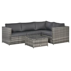 Outsunny 3Pcs Rattan Corner Sofa Set Coffee Table Garden Furniture With Cushion Grey