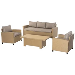 Outsunny 4 PCs PE Rattan Wicker Outdoor Dining Set Sofa Chairs Table Cushions Deep Grey