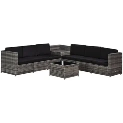 Outsunny 6Pcs Rattan Sofa Set Coffee Table Footstool Outdoor With Cushion Mixed Grey