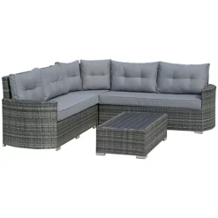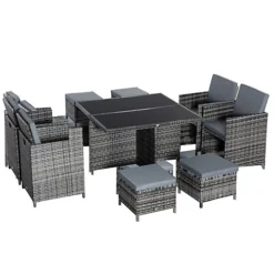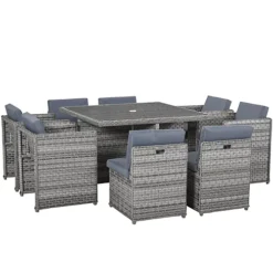 Outsunny Rattan Dining Set Garden Furniture Cube Table Chair Stool Cushion Seat Grey