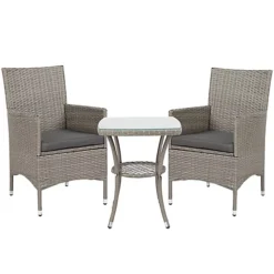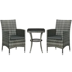 Outsunny Rattan Bistro Set Garden Chair Table Patio Outdoor Cushion Conservatory Mixed Grey