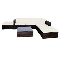 EVRE Brown Rattan Outdoor Garden Furniture Nevada Set 6 Seater Sofa With Coffee Table