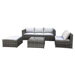 EVRE Grey Madrid Rattan Garden Furniture Set Patio Conservatory Indoor Outdoor 4 Piece Set