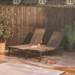 Set Of 2 Textilene Sun Loungers – 2 Positions – Levito – Taupe