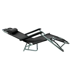 Garden Folding Easi Recline Sun Lounger Black Zero Gravity Deck Patio Chair + Pillow
