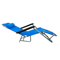Garden Folding Easi Recline Sun Lounger Blue Zero Gravity Deck Patio Chair + Pillow