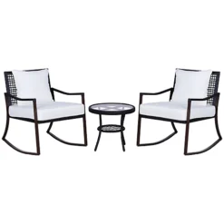 Outsunny 3 Pieces Lounge Chair Set Garden Sunbathing W/ Table Black