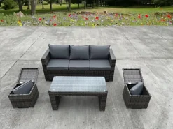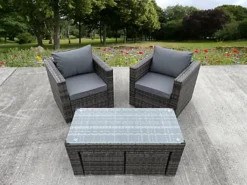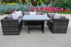 RATTAN DINING GARDEN WICKER OUTDOOR CONSERVATORY CORNER SOFA FURNITURE SET CUBE GREY