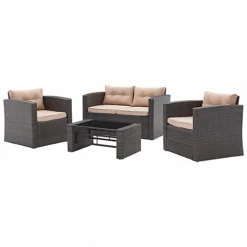 Carmen 4 Piece Outdoor Sofa Rattan Garden Set Loveseat Armchairs Black Topped Coffee Table