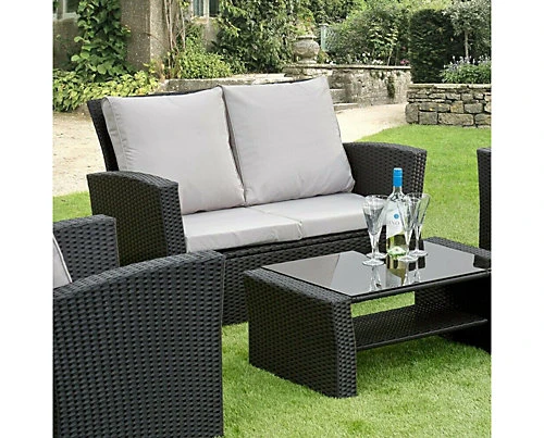 Garden Store Direct Rattan Garden Furniture 4 Piece Patio Set – Black With Grey Cushions