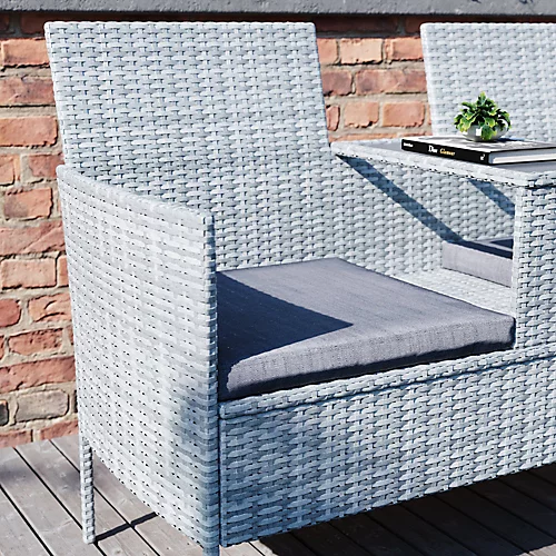 The Vienna Love Seat chair is a perfect addition to any romantic setting. It is designed to provide comfort and utility, with a designated slot for food, drinks or a laptop, making it easy to spend all day soaking up the sun. The rattan material used in the chair is both fire retardant and UV resistant, making it durable and perfect for any weather conditions. The seat cushions are washable, ensuring that any spills or stains can be easily cleaned. The chair is delivered flat-packed with simple instructions for self-assembly at home, making it an easy addition to any setting. Overall, the Vienna Love Seat chair is a romantic and practical choice for anyone looking to spend quality time with a loved one.