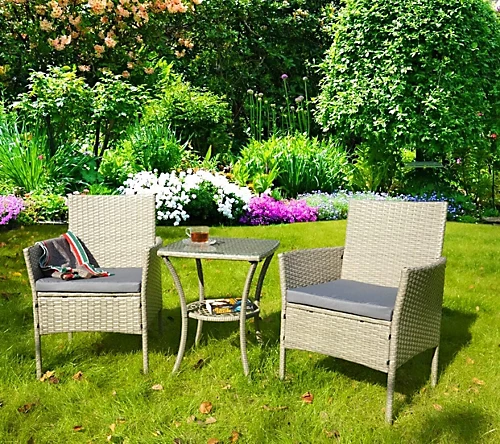 BISTRO 2 SEATER SET: The garden bistro set includes Cushions and is sure to be a great addition to your outdoor space. The two chairs and table give you great seating options for your garden, patio or decking!