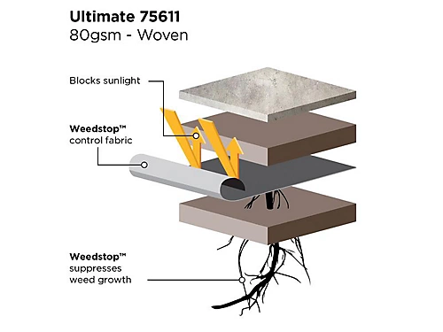 Gardman Weedstop(tm) Ultimate fabric is suitable for a wide variety of weed-suppressing tasks. It works under paving and patios, decking, gravel and decorative stone, as well as greenhouses and landscaping. Ideal for ground stabilisation and woven for ultimate strength. It is also UV resistant.