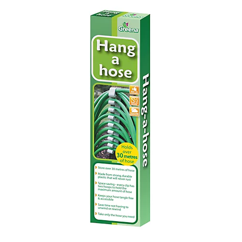 Eliminate tussling with that tangled up hose pipe with Hang-a-Hose. Simply use this unique product which allows hose loops to hang separately from each other. Furthermore, you only need unravel the length of hose you require, saving time by not having to unwind or rewind. Pack of 2.