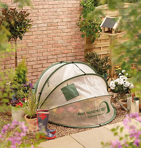 The Horti Hood Mini 180 is a portable greenhouse, cloche and cover. It’s designed to protect plants from harsh weather conditions and pests while providing optimal growing conditions. The Horti Hood Mini 180 is easy to assemble and can be used virtually anywhere, making it perfect for people with limited space or those who like to garden year-round. With its sturdy frame and durable cover, this mini greenhouse/cover is a great investment for any avid gardener.