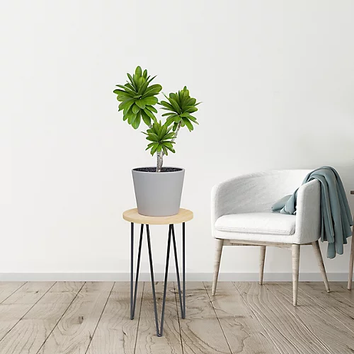 HORTICO mid-century plant stand features clean lines and a light bamboo wood top. Three steel wire legs create a sturdy base for the bamboo top and will showcase your potted plant. The powder-coated finish on the base legs are matte black and will keep the piece looking good year after year.