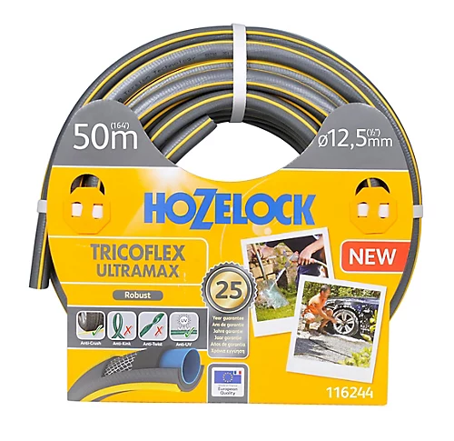 Ultramax is a robust, anti-crush hose, perfect for tougher garden watering tasks. Weather proof with UV & frost protection guarantees that your hose can be used effectively in a range of climates from -15°C up to 60°C. 3D ErgoRibs run the full length of the hose, improving the feeling in hand, making the hose more comfortable to use. TNT™ anti-twist technology ensures the hose does not twist under pressure, providing a continuous flow of water. Soft & Flex™ technology delivers superb resistance to kinking, giving the feeling of lightness & flexibility allowing you to move your hose effortlessly. Smooth inner layer enhances water flow.