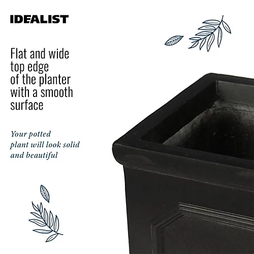 - DURABLE FIBER & STONE MIX makes the perfect material for garden square planters. Dimensions displayed in the and shown in the visual imagery are outer edge/lip measurements. (Outer edge to outer edge) This dark grey square plant pot has a top edge solid lip that has a thickness of up to 2-3 cm on each side. This will reduce the maximum inner planting space by a total of 4-6 cm
