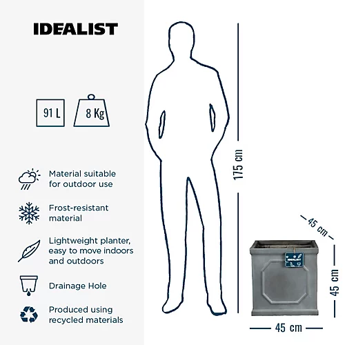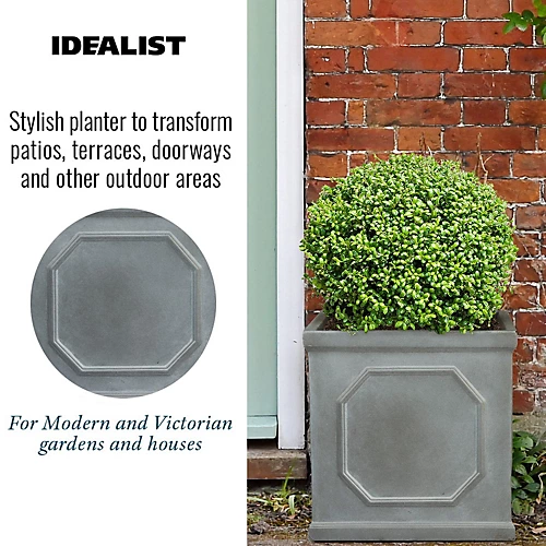 - UV & FROST RESISTANT square plant pot. The elegant relief pattern gives this planting pot a timeless look. Place it in the garden for stylish flower arrangements