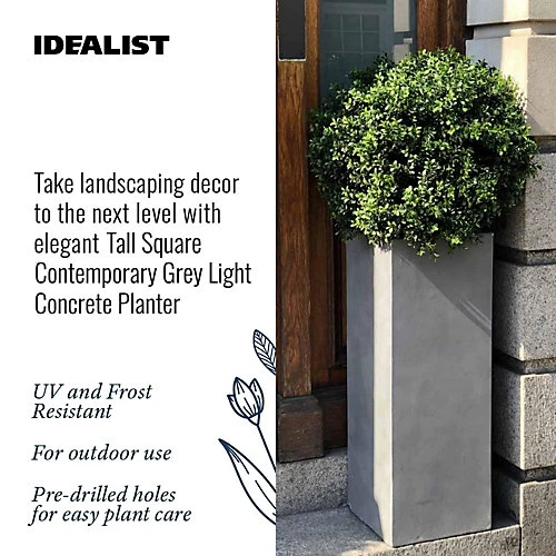 - UV & FROST RESISTANT tall square plant pot. This grey planter has a contemporary concrete look. Place it in the garden for stylish flower arrangements