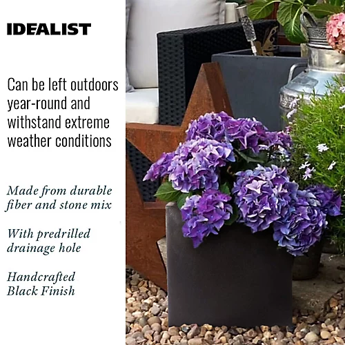 - UV & FROST RESISTANT square plant pot. The smooth surface of this black table planter gives it a timeless look. Place it in the garden for stylish flower arrangements