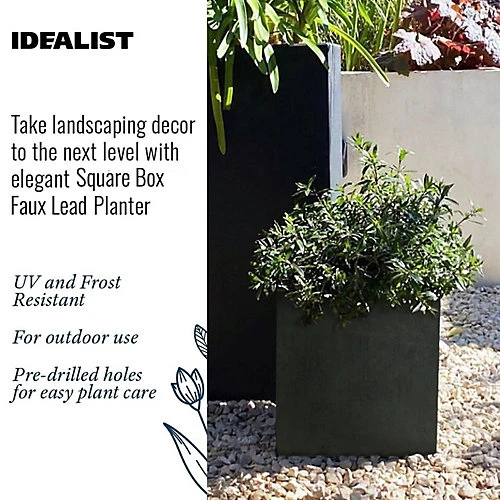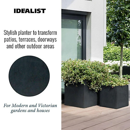 IDEALIST Flower Box Square Garden Planter, Faux Lead Dark Grey Light Concrete Outdoor Large Plant Pot H40 L40 W40 Cm, 65L